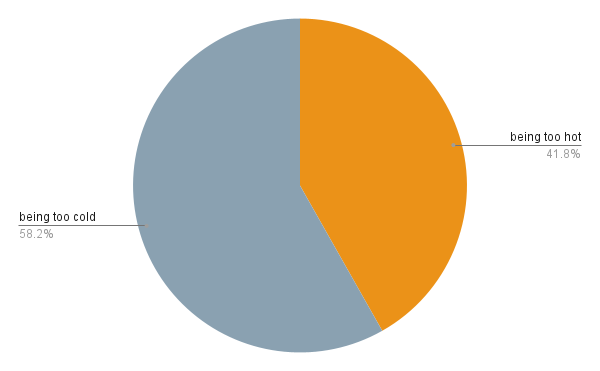 Being too cold is definitely my answer right now as well, but I almost guarantee you the answers would be flipped if I asked this in, say, February. I just may do that.