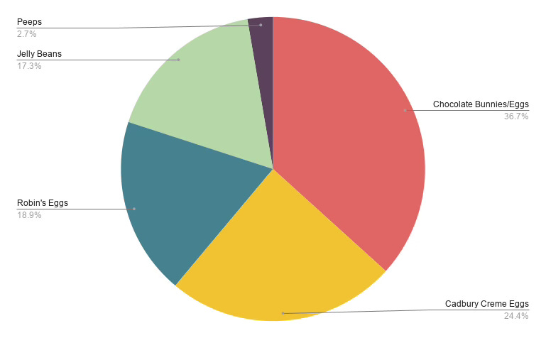 Chocolate Bunnies/Eggs: 36.7%